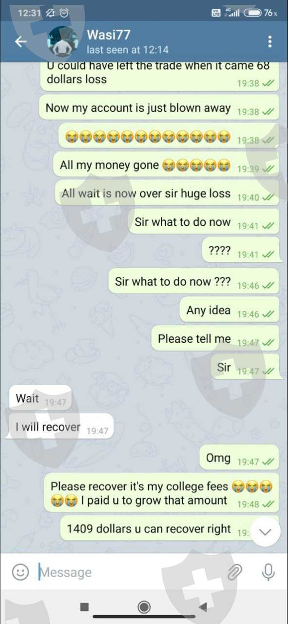 他们提供帐户管理服务,但不知道他们在做什么。一名会员在短短 2 天内损失了全部余额(1,409 美元)。我们从未见过电报上的投资计划或账户管理服务是否损失余额。欺骗客户。不要投资。