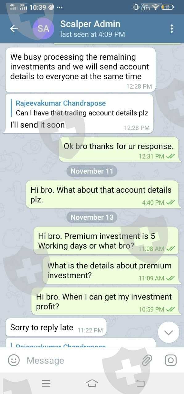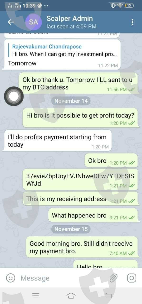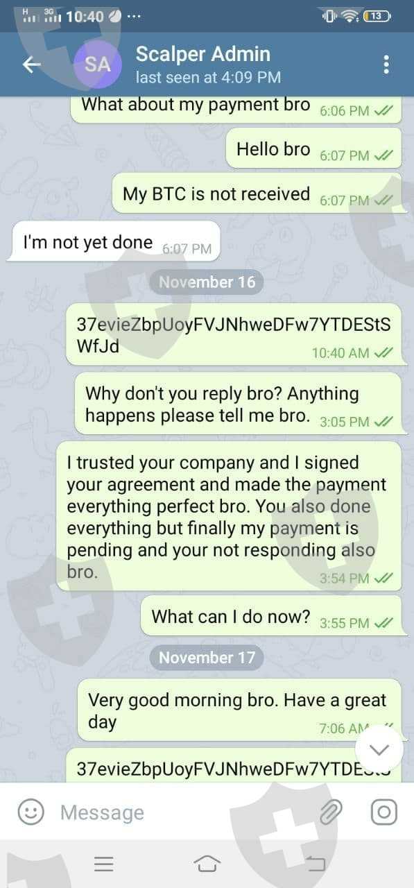 Do not investment with them, but report them as scam if you see them online! See the screenshots above, the particular client invested 100 USD and never got a product or his investment back. They just stop responding. Be careful where you invest your funds!