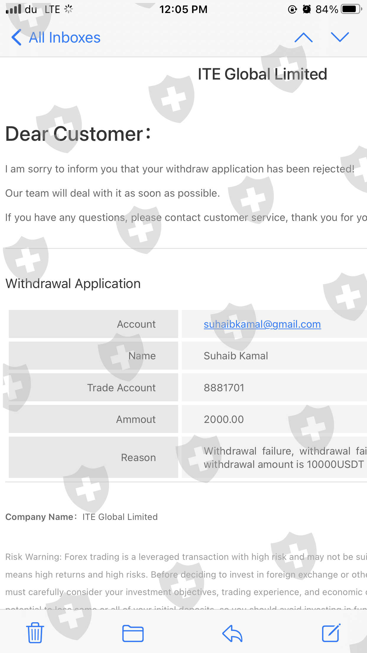当我入金$1800,赚到$3800 时,我申请出金被拒绝了,被告知最低提款金额是$ 10000 。所以我在我朋友的担保下向他们贷款,当我金额达到10000 美元他们再次拒绝了出金,因为他们这次要求以利息(2053 美元)作为直接存款支付贷款,我请求他们扣除金额并提取其余部分。注意:他们只接受加密货币的间接存款。