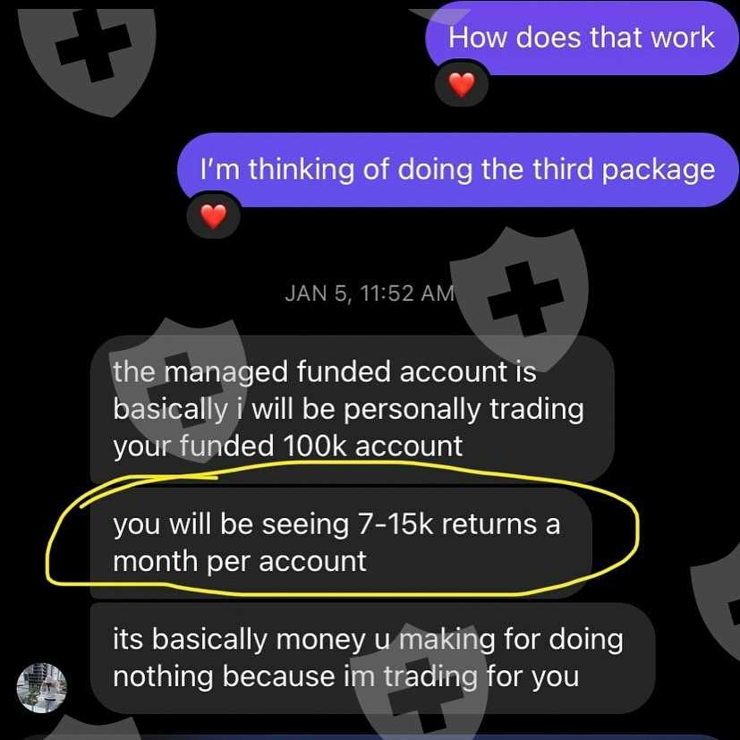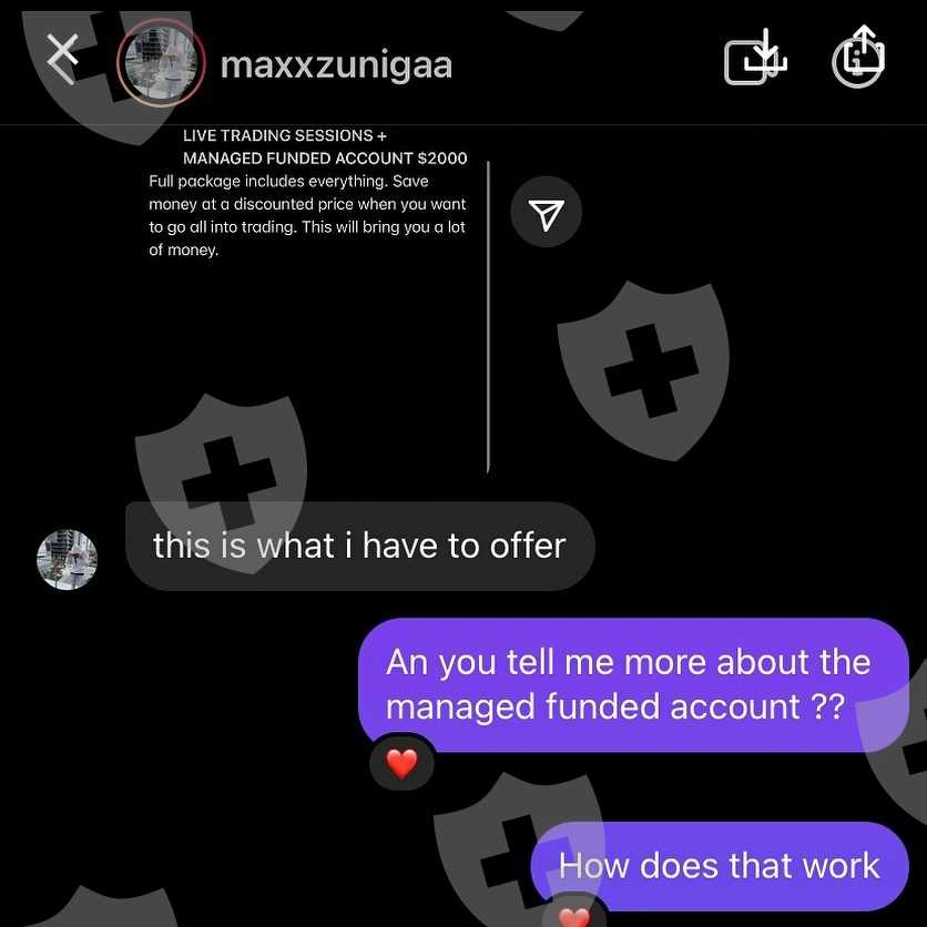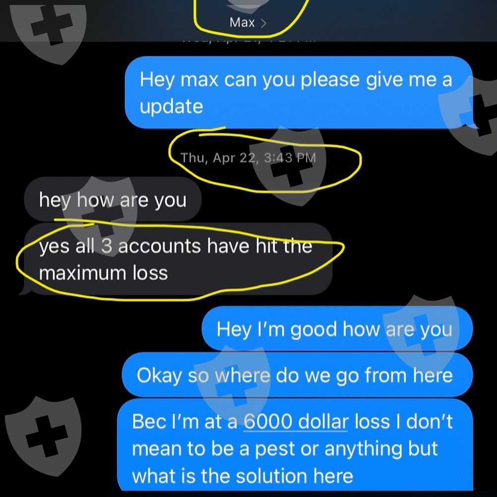 This is the victim who was trying to make money from forex for her sick father. She contacted Max in January. Max Zuniga said “You will be seeing 7-15k returns a month per account”.
