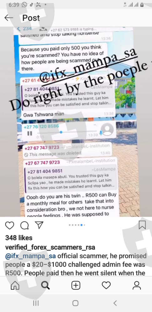 @ifx_mampa_sa official scammer, he promised people a $20-$1000 challenged admin fee was R500.