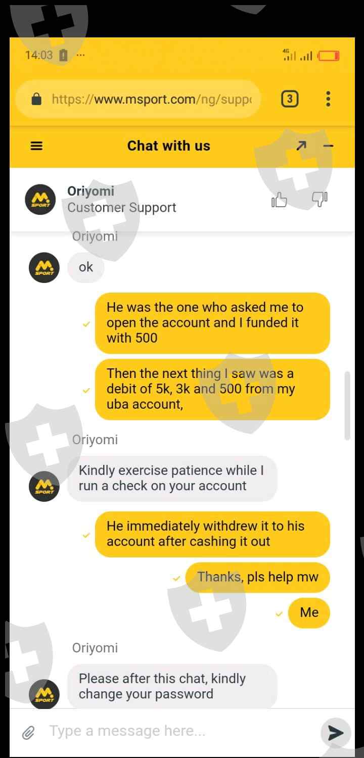 我被骗使用 Msport 帐户管理,要在上面存一定金额,他们会帮助赚钱,但这是个骗局,他们的电话也是假的。