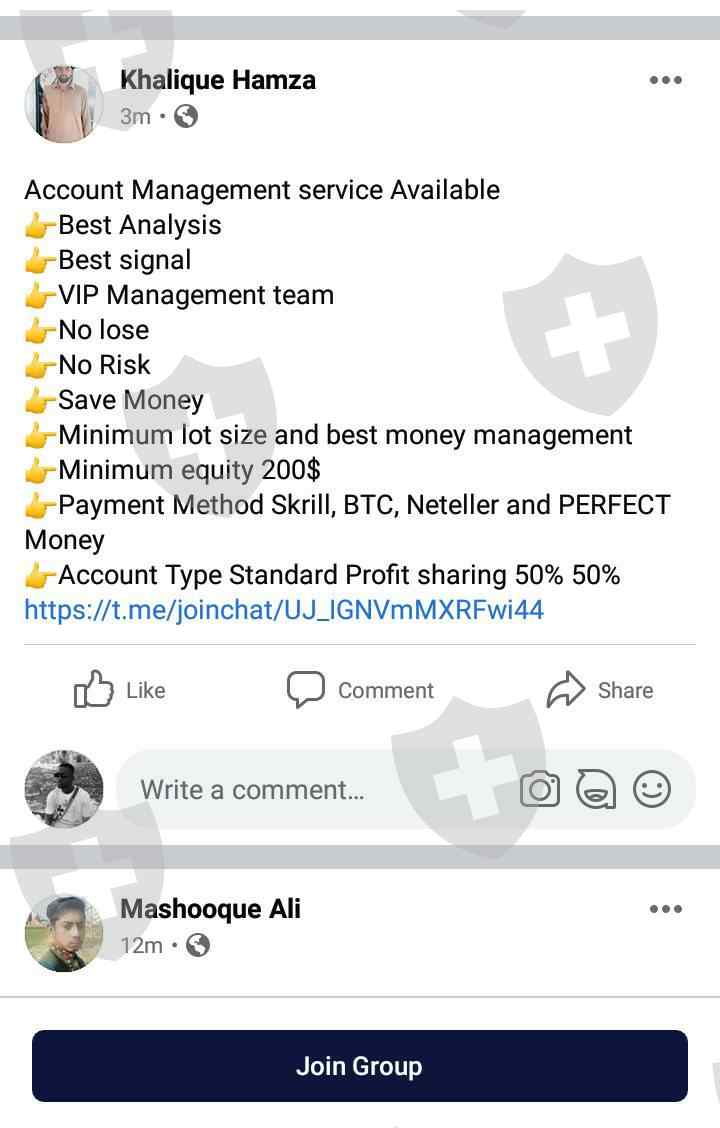 他们要求入金来帮助管理帐户,注资后会让你放弃登录并更改帐户密码,从而提取所有资金并仍然使用存款链接借记卡,小心,一个朋友因此损失了200多美元。不要加入任何Telegram 组,都是骗局。