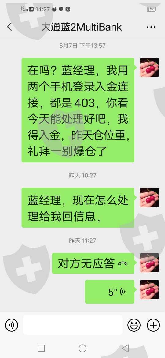 大通金融,几天时间无法入金,导致客户爆仓,期待大通领导给出合理解释,尽快给满意处理!