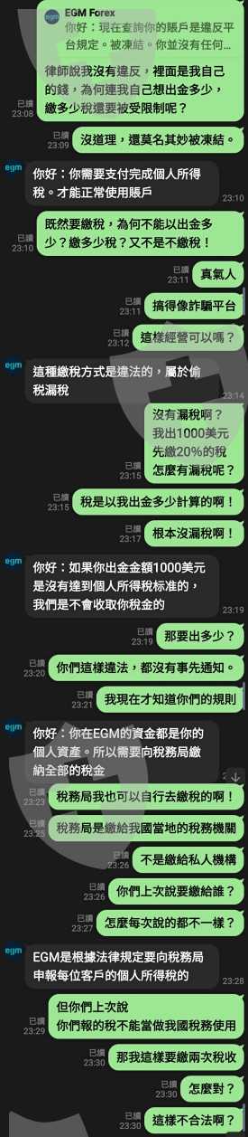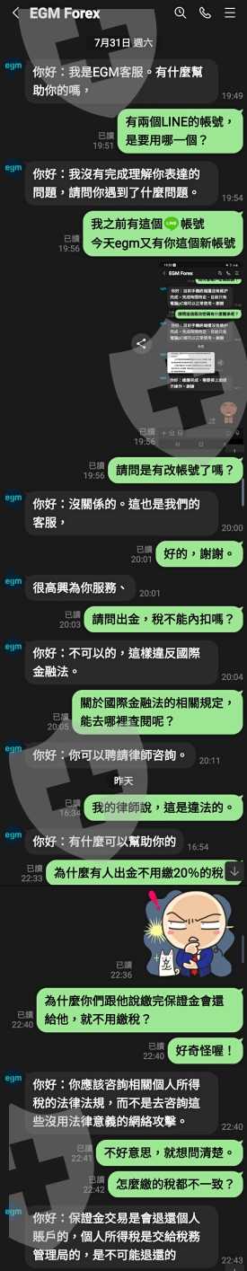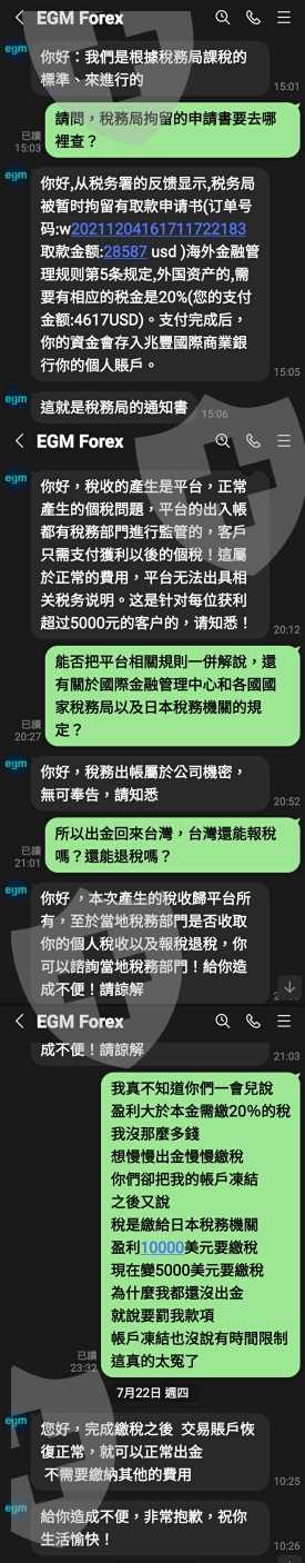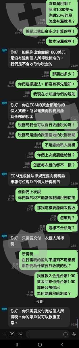 還說EGM是國際外匯經紀商、在日本監管與上市。盈利屬於外國資產。必須向日本稅務機關繳納相應的稅金,說並不是台灣稅務局!