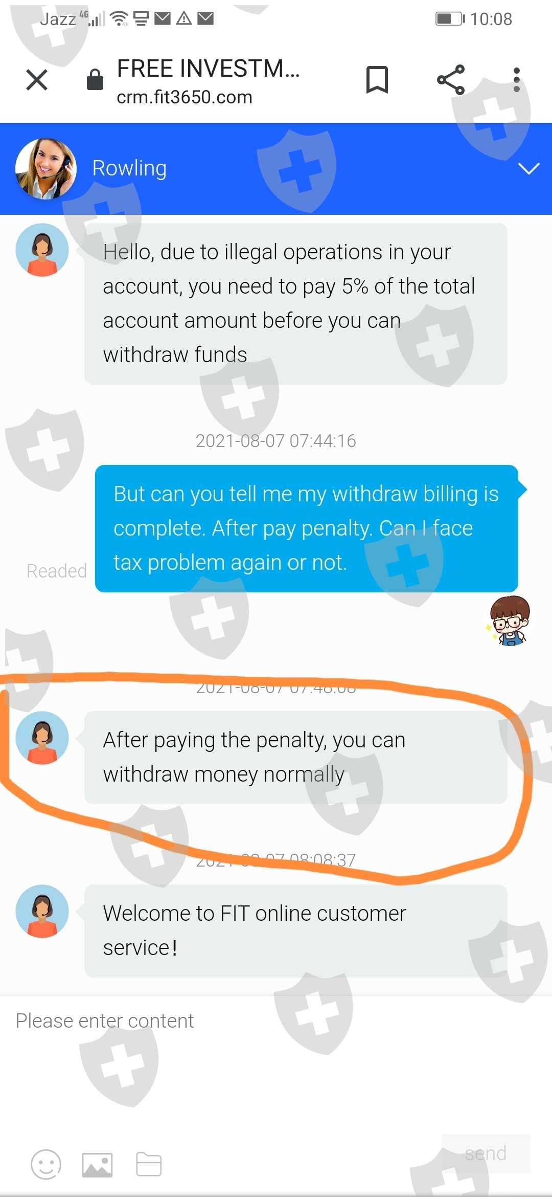 我开始投资 800 美元并赚了一些利润。我想出金时,他们说要再入金10,000 美元。我卖掉了我的房子并存入了 12000 美元,然后又要缴纳 35% 的税,当我再出金时,他们禁用了我的帐户。现在我无法登录,我的钱被偷了,这个网站是个大骗局。请不要像我一样在上面投资。
