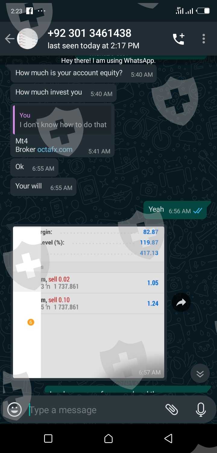 一个自称来自巴基斯坦的人从尼日利亚发来消息 (Abdullahi Issa) 并试图诱导我支付 200-500 美元给他,自称是专业的客户经理,他展示了一些照片只是为了让人信服,但都是假的。我希望 WikiFx 能注明OCTAFX是一个黑平台,没有法律监管。
