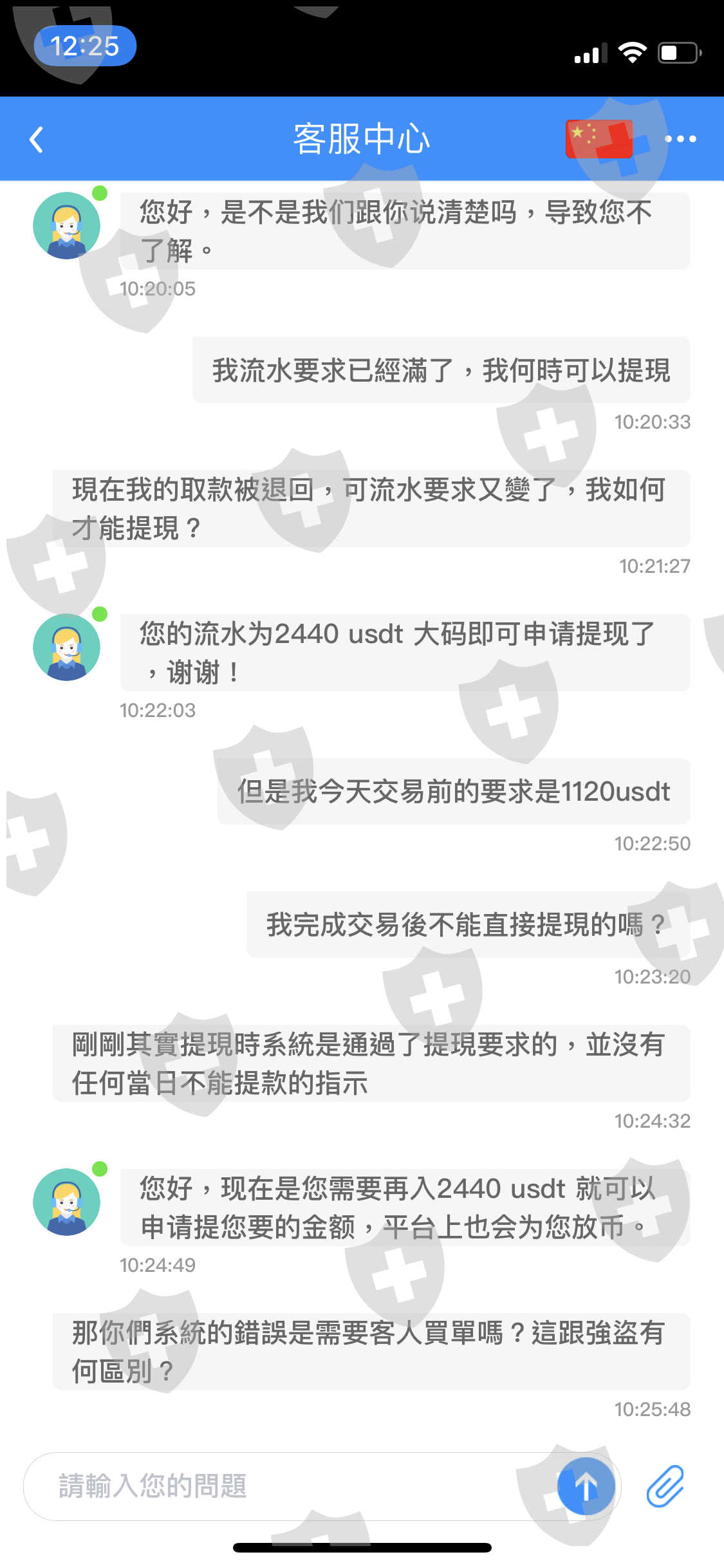 平台假稱预防恶意套现洗黑款,提币需交易达到本金一倍流水才可申请提币。