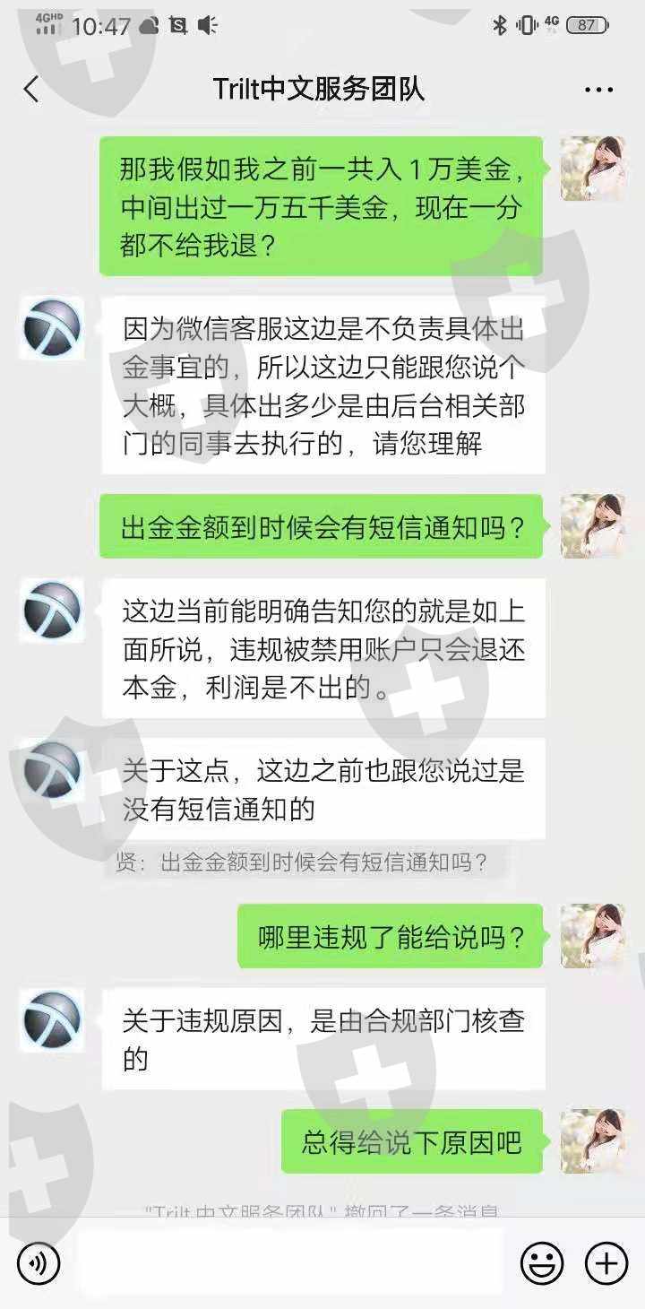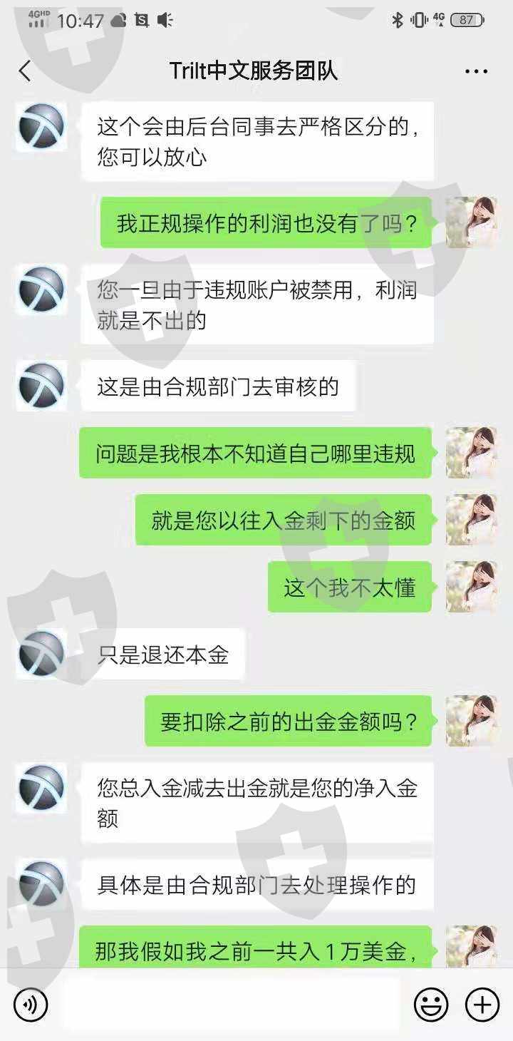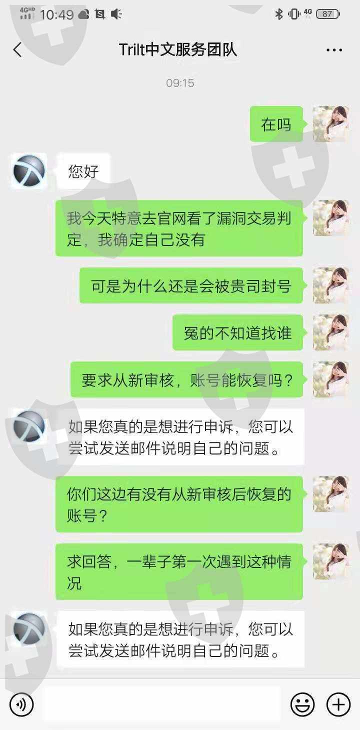 本人在拓利平台合规操作一年多,之前一直亏埙没什么事情,最近两个月开始盈利却在昨晚突然被封账号,平台发了封邮件告知后就封了我账号,现在MT4已经登录不上,官网账户也登录不上,问客服也不给说原因,让发邮件给官网,发了也未收到任何恢复
