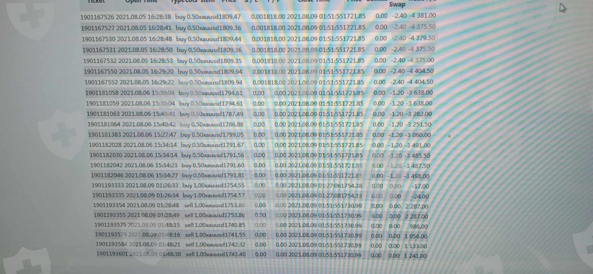 智汇外汇!平台MT4软件中时间为2020年8月9日早上6-7点之间,黄金在开盘1762,随后下跌的期间我分别在1753-1743之间进行了锁仓买了空单,平台在1730-1721之间点差竟异常浮动滑点波动增大至10美元以上,导致我在该平台市场中锁仓订单被强制平仓离场,损失严重。经历近几日我本人与平台沟通无果,现诉诸各大网站曝光,强烈要求平台赔偿相应的损失。平台一味地坚持把强平归结为执行正确订单政策,再后面就是归结为消息面影响,把自己置身事外。