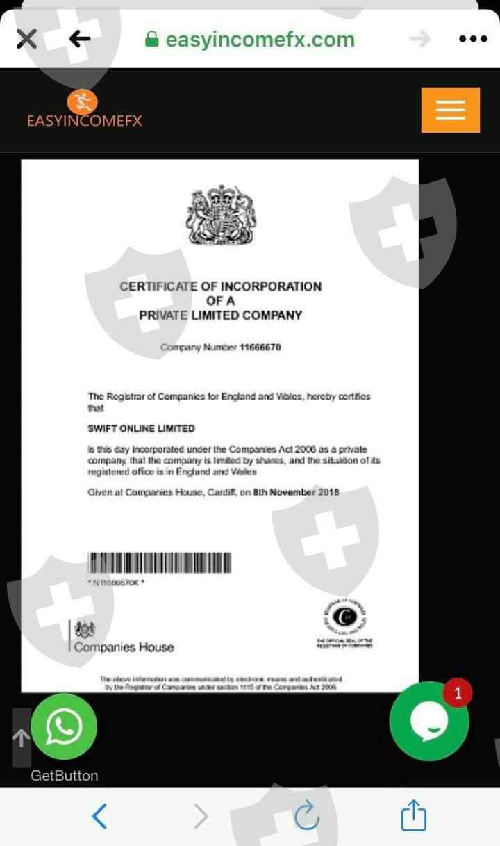 我举报 Easy Income FX 虚假投资平台。原因 1. 匿名所有权 2. 地址不完整。 3. 虚假商业登记。