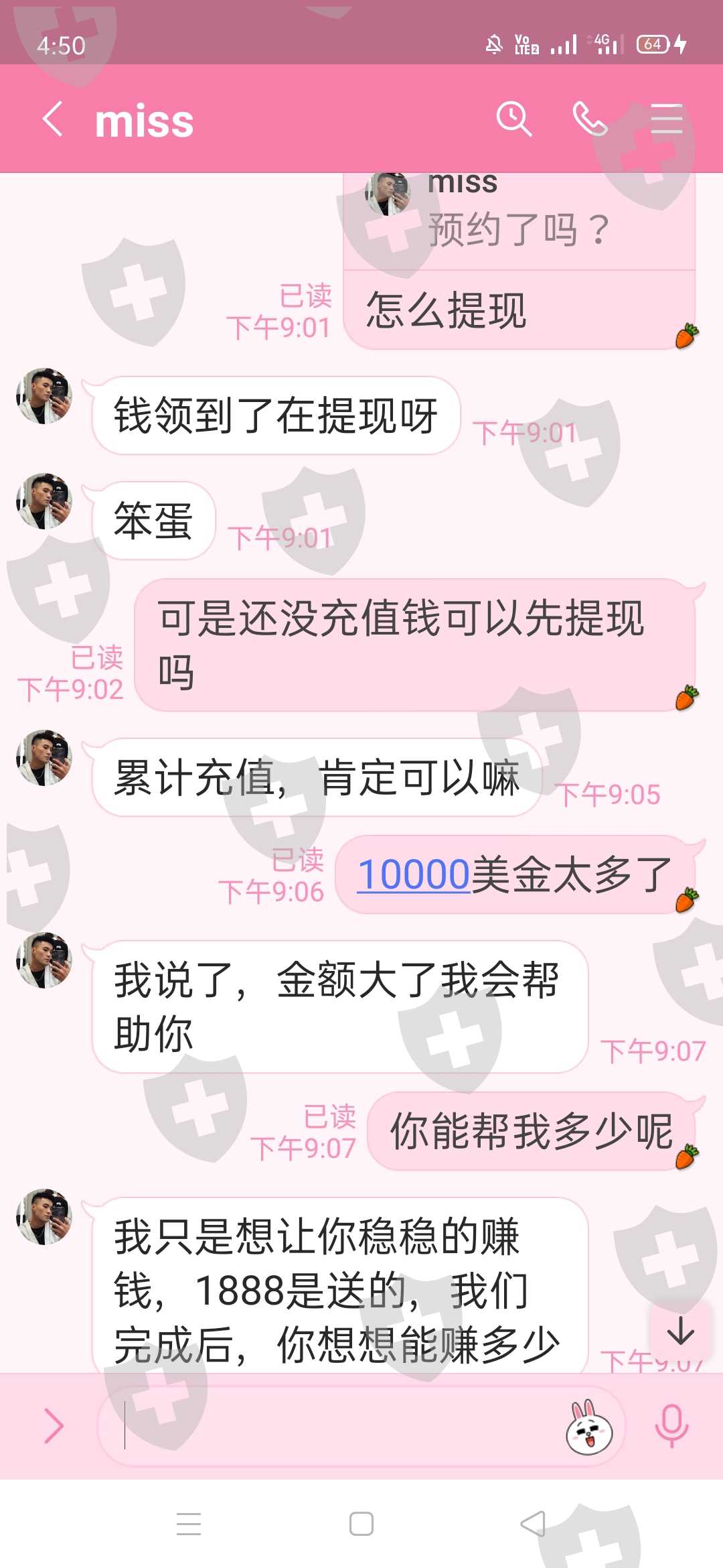 被杀猪盘的骗子骗诱惑刚开始投入小资金还能出金,然后投入大资金就提示交易量不足流水不夠无法出金提现,要充流水10000USDT完成才能出金提现,一直吹人入金充值