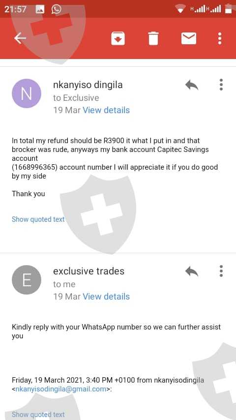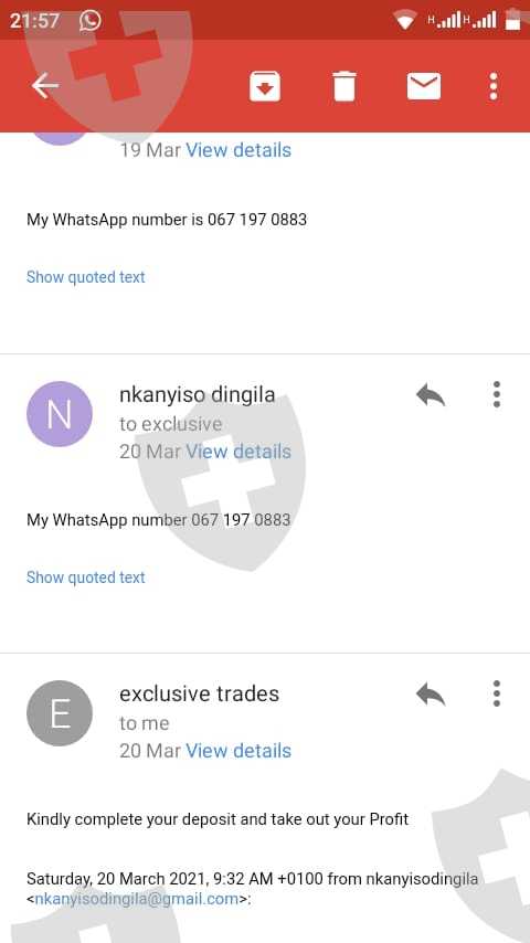 Firstly they said I must register to so I can have an account and I did and believe it was legit, after that they asked me to deposit R2000 so that I can make a profit of R20000 in 3 days I told them I will make a deposit of R1000 because I won't afford R2000 It was end January they gave a Standard bank account details, before making a deposit I saw that okay it a business account of which it gave me more hope, then later on they said my profit R50 000 in order for me to get that profit.