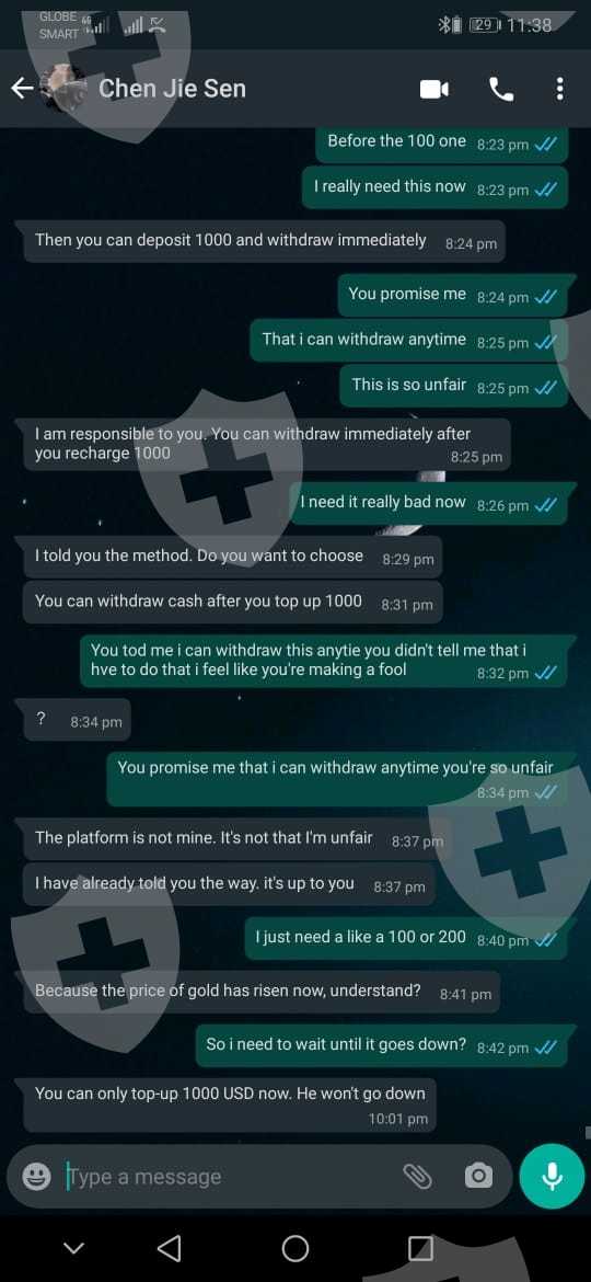 我是这个诈骗经纪人。我希望你能帮我拿回我的钱并重新开始。