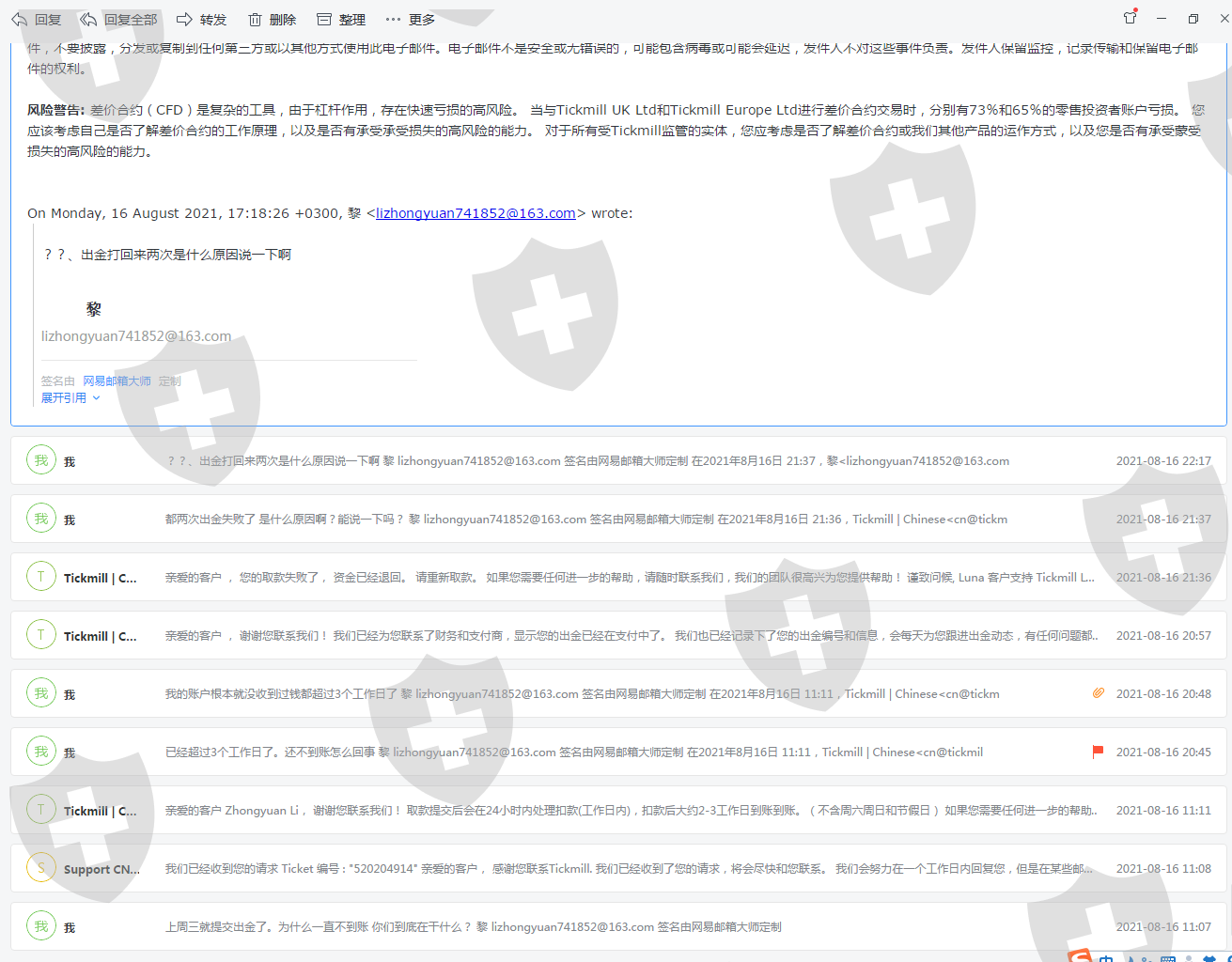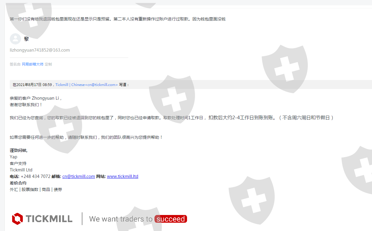 TICK出金一直不到账提交出金就给驳回且不告知任何理由,而且之前驳回都是把钱退回钱包还可以重新提交现在驳回是直接钱包里面钱不见了不能提交出金也不到账