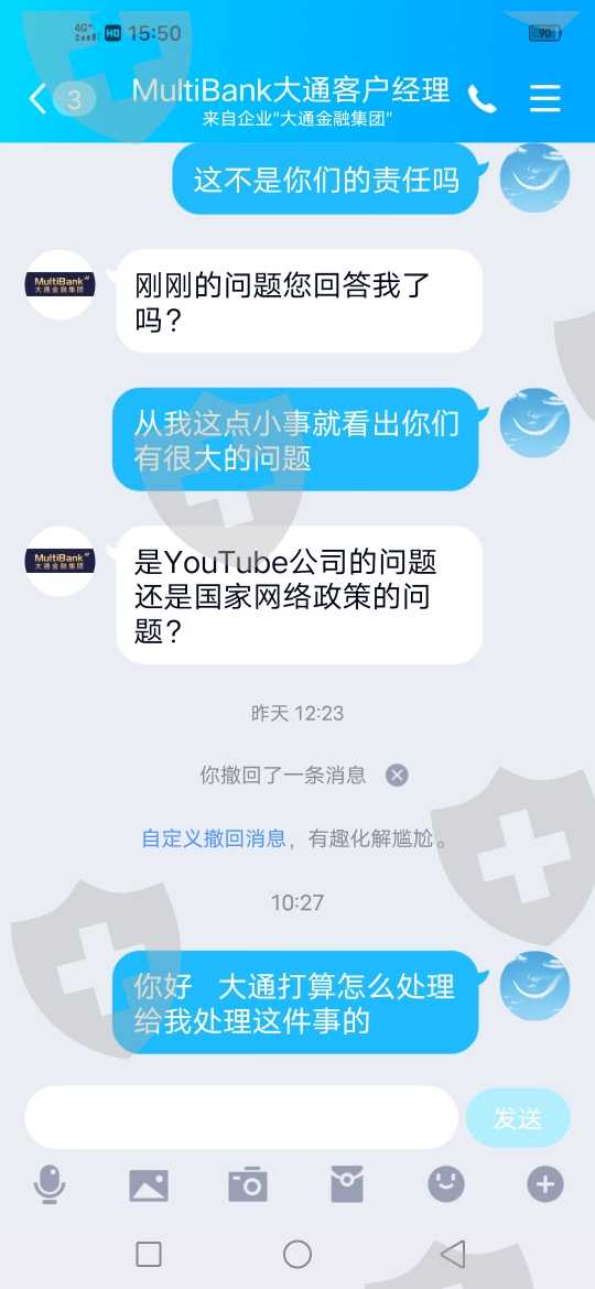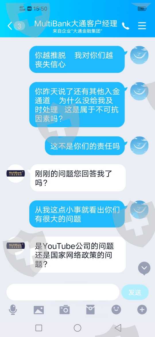大通金融,几天时间无法入金,我地区网络运营商,我也联系了,要是第一页面打不开,是网络问题,是到第三页面打不开的,那是大通技术问题,假如有网路原因,为什么不给客户解决其他入金通道,保障资金安全和正常出入金,是大通第一必须保障的条件不是吗?就应该是大通必须解决的问题!