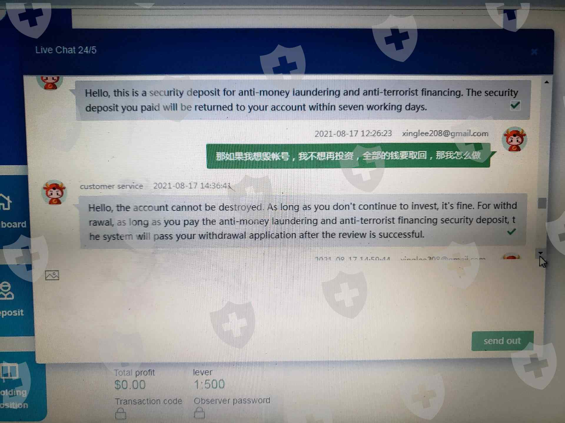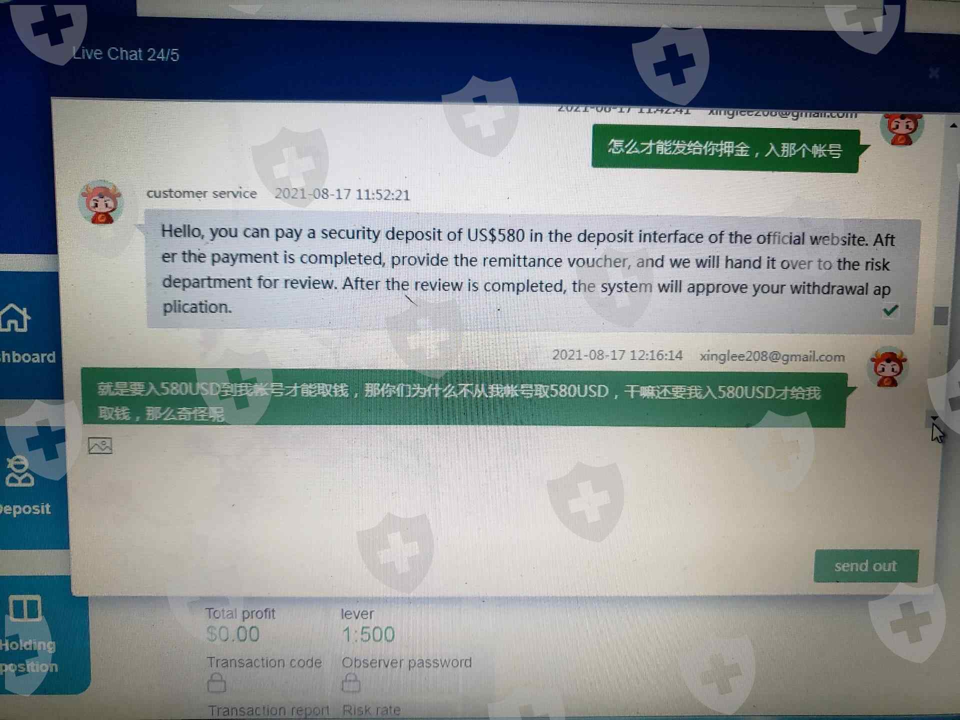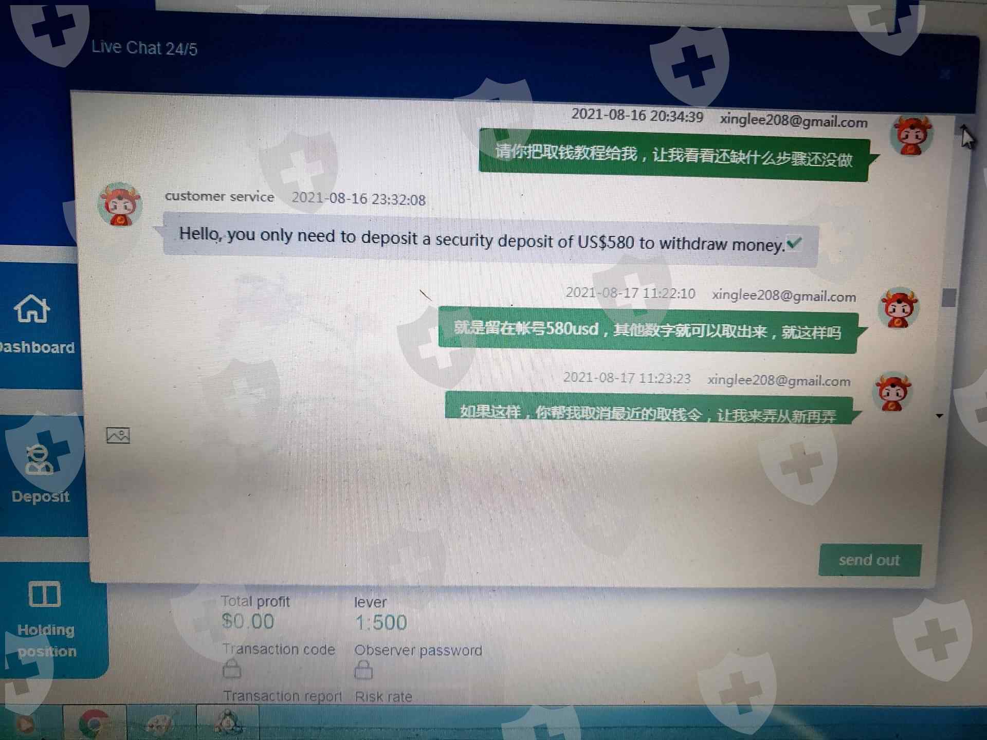 这个平台是不能出金,谁还是在这个平台投资要小心,快收手,不要入太多,我想出金时他们要我押金,我押金好他们要我纳税,全部钱都通通给他们,他们还是不给出金。下面是照片。