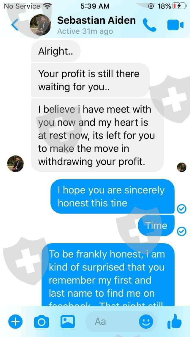 To be frankly honest with what was happened to me tonight. This kind of shook me up. Around the new year, I invested my $250 (which I borrow from a good friend of mine) with this man with name of Sebestian Aiden through his Telegram channel, got blocked after I sent him that amount in bitcoin. Of course, I was so disgusted and pissed off as hell. I couldnt forget and move on for while. Took me a month to move on.