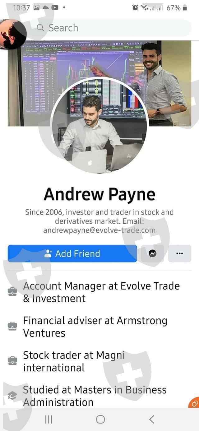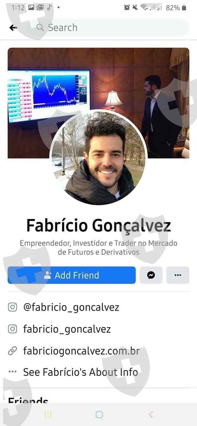 I would like to inform everybody that this man on the pictures are not his real name, he's a scammer. The real name of this person is fabricio goncalvez! He is youtube vlogger,and a brazilian person. So if you recieved a friend request or a message using this picture and telling you to invest a trading dont believe and i know you guys wont...