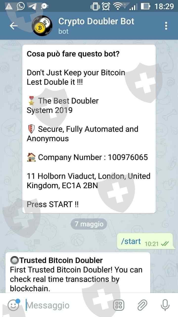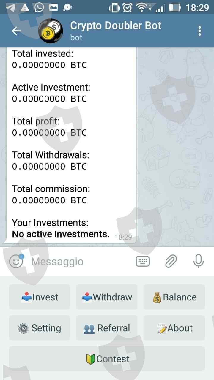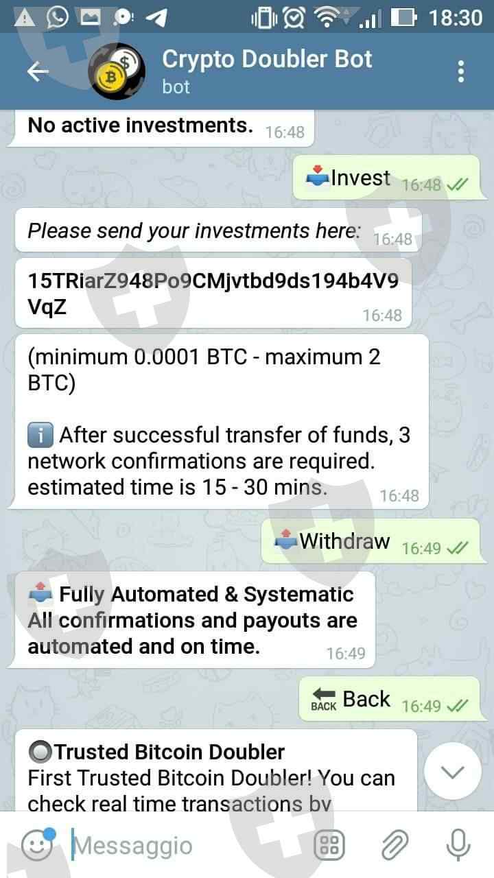 CryptoDoublerX_bot this is scam I invested e there is no found on balance after 10 hours. The company not exist . Do Not Invest, Please help me.