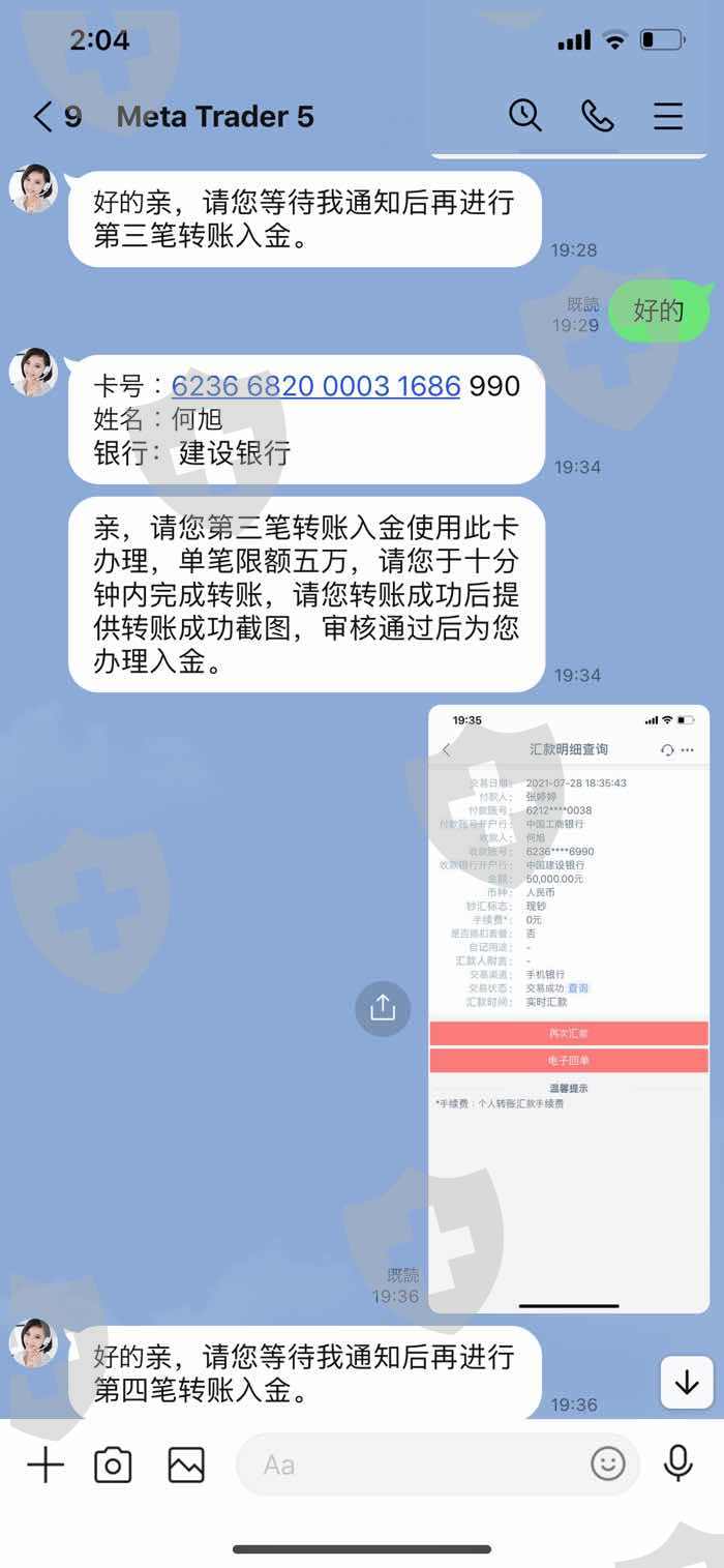 7月12日在网友劝说下在Sunton Capital公司先后通过日本银行帐户和中国银行账户入金45万人民币到MT5进行外汇交易;