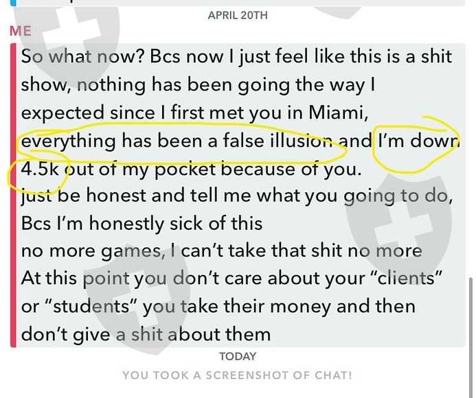 out to Max and paying for various expenses to learn from him. Again the convo screenshots portray Max having zero empathy or respect for his students or clients and he just completely ghosts the guy after failing his account smh.