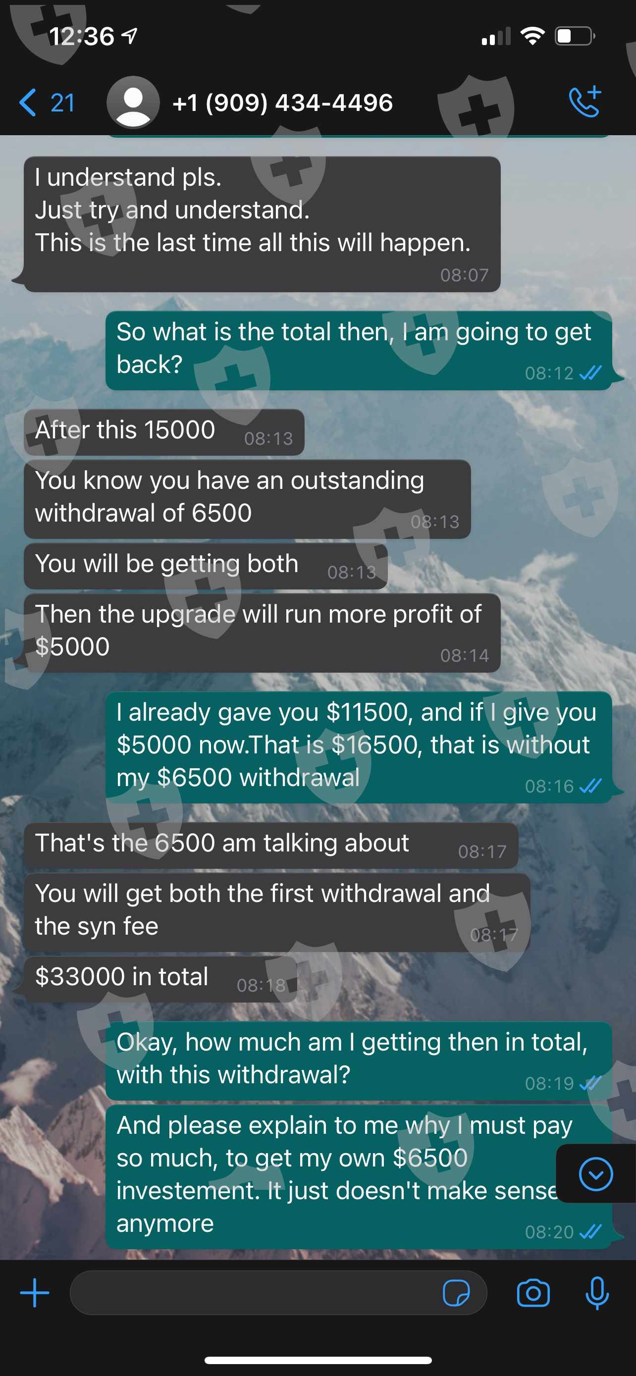 to fund my wallet with $5000 to get my $5000 payment and did send it. it failed, then they said fund with $6500, I did it, also send it, then it failed again and they said, they will pay half of $6500 and I must pay half, I paid mine, still waiting to hear from them.A lot of excuses and no they just ignore me. then they tell me I must invite people to there telegram group
