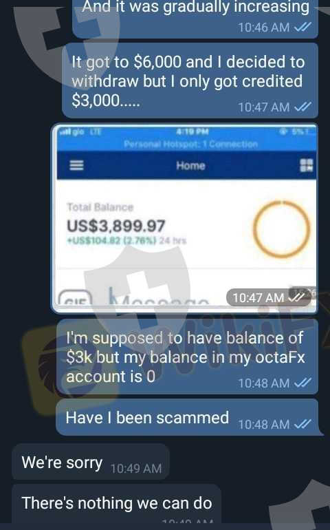 I invested $3k in OctaFx, traded till it become $6k and decided to withdraw…. However, I was only creadited $3k and my OCTAFX balanced went to 0.