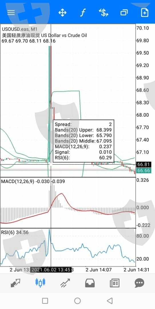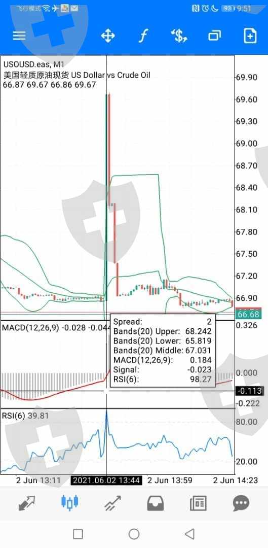 我的头寸突然被清算了。我设置了止损和止盈,但并没有用。我在 MT5 时间 13:40:01 以 66.92 美元的价格开立了 USO/USD卖出头寸。之后,在短短几分钟内,价格在13:44 飙升至 69.67 美元,然后是M1 图所示 (13:45) O:69.67,H:69.79,L:68.11,C:68.16。然后它以 69.69 的价格让我的账户爆仓,完全停止了交易,我已经与同一个经纪人和其他经纪人开设了一个模拟账户来检查原油价格。但在那段时间里,只有我的经纪商图表价格达到了 69.69 美元,其他经纪商最高价$68.97,同一天,我要求提款4000美元。但是客服说这是第一次提款,需要24小时来评估我的申请。自 2021 年 5 月 14 日以来,我的交易进行得很顺利。这绝对不是巧合。