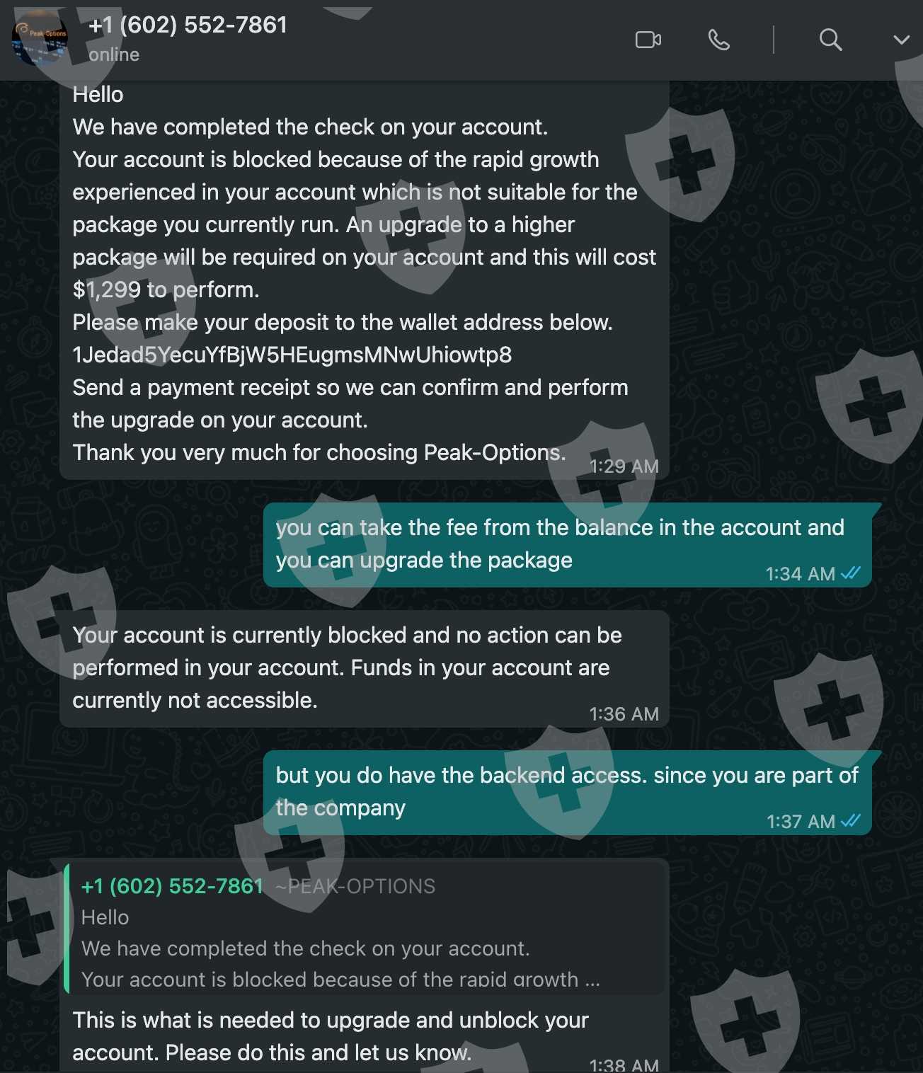 "Your account is blocked because of the rapid growth experienced in your account which is not suitable for the package you currently run. An upgrade to a higher package will be required on your account and this will cost $1,299 to perform. "
