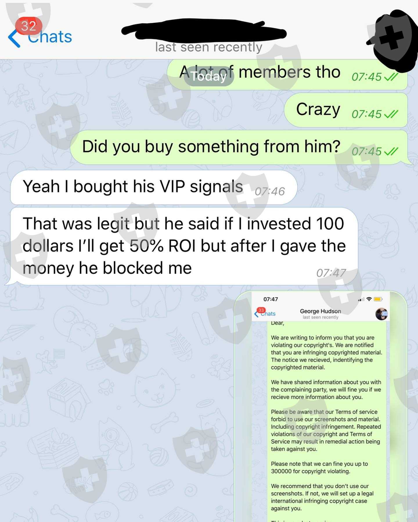 Another channel that is scamming on people. He is using screenshots and signals from other channels. Once he recieved the client payment he is blocking them right away. Don’t invest with this scammer. See screenshots for more info.