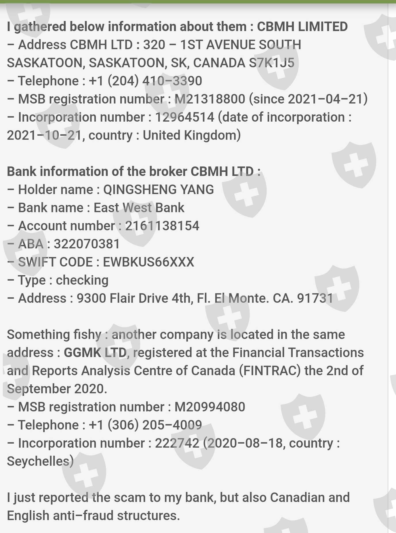 Scam broker CBMH LIMITED stole 25000 euros from me Thread starterElyus Start dateJul 28, 2021 Tagscbmh limited cbmh ltd