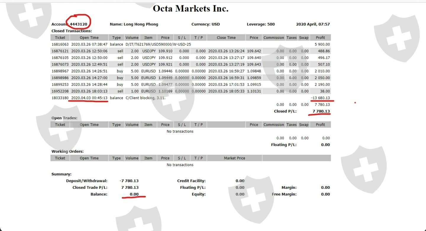 On March 27,Octafx blocked my account, deleted