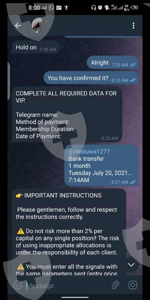 I was scammed by a telegram channel owner, he promised to give my signals (paid), after my payment he added me to the signal group...I started trading and was always at loss even wen the signals were accurate just because of incorrect slippage by octaFx, I think they manipulate the trade