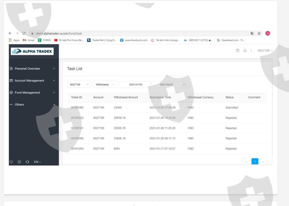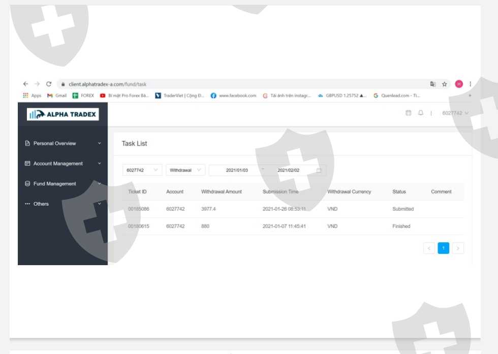 From October 8, 2020 to November 30, 2020, withdrawals are still taking place as usual, but from December 1, 2020, Alphatradex considers that some accounts are hedging and the account is closed. lock up.