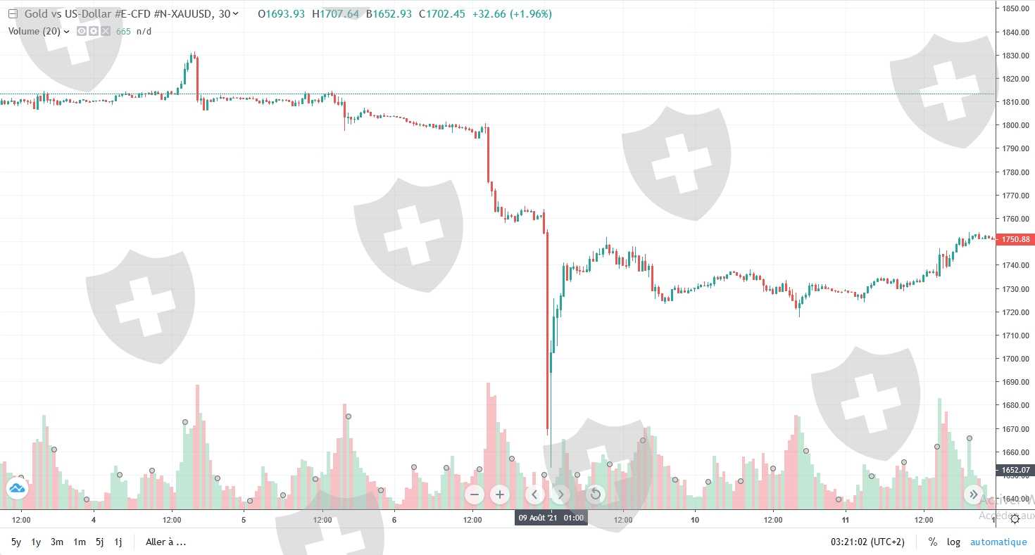 in the space of an instant, trading moved the price of XAU / USD from 1697 to 1671, a difference of 26 points. Also, during the fall, I was unable to deposit to protect my account. XAU / USD hit 1653 while the official low is 1687.