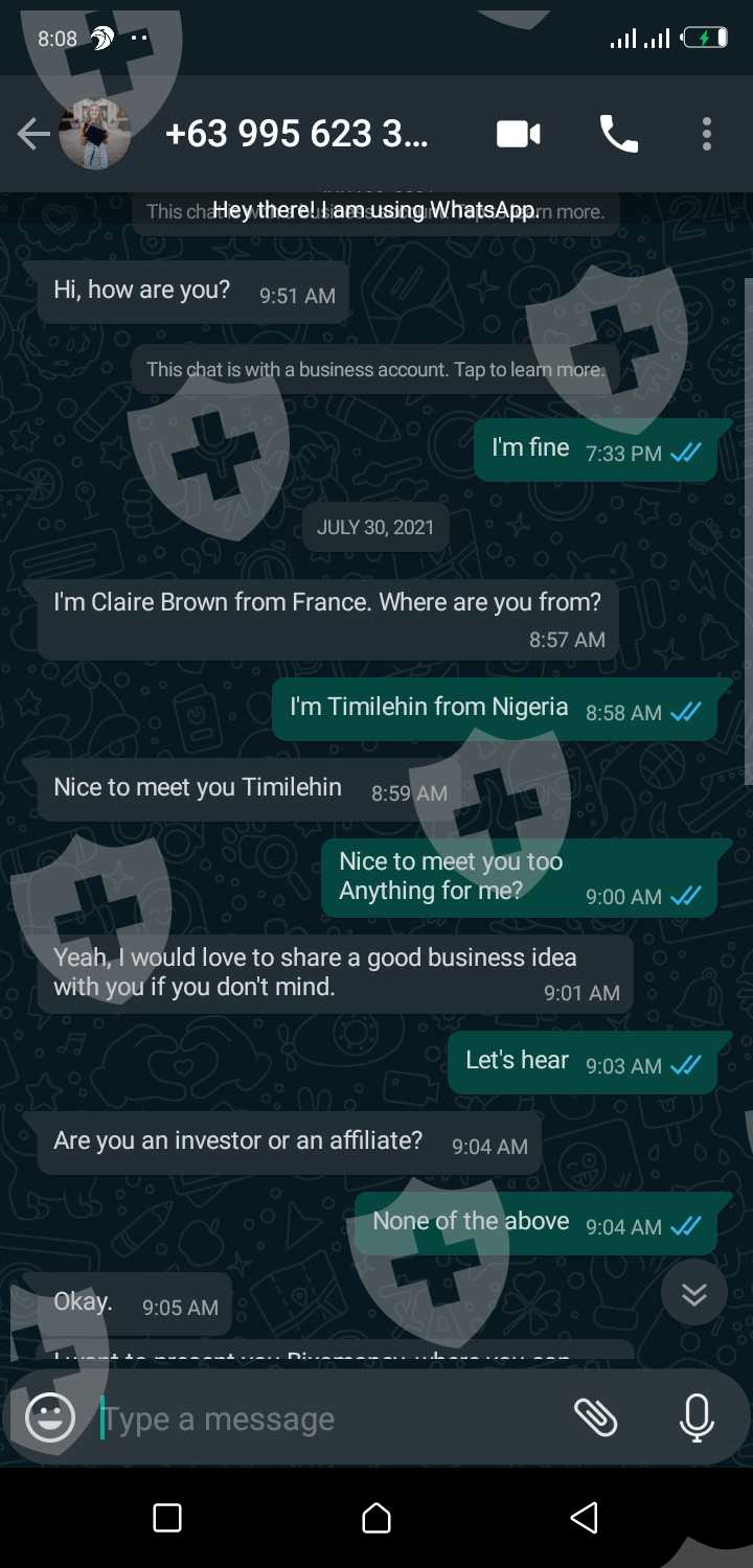 A lady from France named Claire Brown chat me about a forex Investment and convincing me to trade with her using Bixo broker but I noticed she didn't teach me any signal or trading method I should go about, all for the money she wants to scam me of, I need am exposure for this as I don't want anyone to get scammed