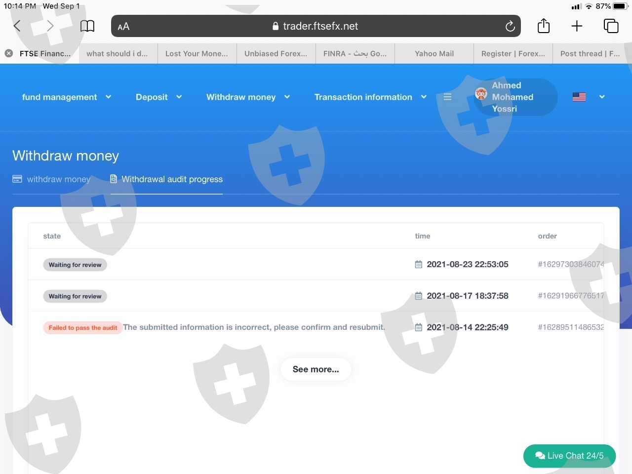 I made a withdrawal request since 17 August and it still reviewed till now , after I complain they told me that I am blacklisted due to violence the Metatrader5 regulations by making a withdrew and keep trade ,and they ask me for 2000 USD to reactiavte the account and can make withdrew and trade again .