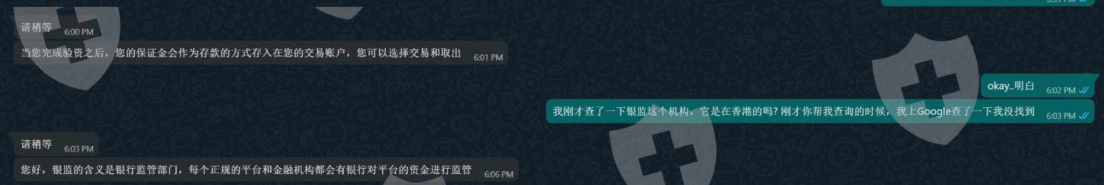 我在香港网上查册中心搜索后得知JYJ Trader Limited在2020年的时候就是与文章中提及的平台ZH INTER是同一家公司,他们只是在2021年的时候换了名字。我在该平台注册前,我7月份在微博认识了一位女网友并在交流了一个星期后,她建议我一起投资现货黄金。我当初入金$280000过程顺利,在我获利超过十万之后,平台根据香港税务法要求我主动缴纳22%个人所得,在完成缴税后我才可以进行出金操作。在差不多两个月之后,那位女网友利用加密货币USDT向我帐号注资三十万美元说是帮我改善生活或者加大投资本金。在我进行出金操作的时候,平台告知我这笔资金是异常注资需要缴纳帐号总余额的15%保证金才可以对帐号进行出金操作。当我问及他们是根据香港银监哪一条法律规定对我进行验资的时候,平台无法明确高告知是根据哪一条法规并且要求我自行查询。由于香港只有金融管理局和证监会是没有银监这个机构,所以我再次想平台要求详细说明银监的含义。平台只是解释这是银行监管部门,但是没有明确告知是哪一个银行监管部门。