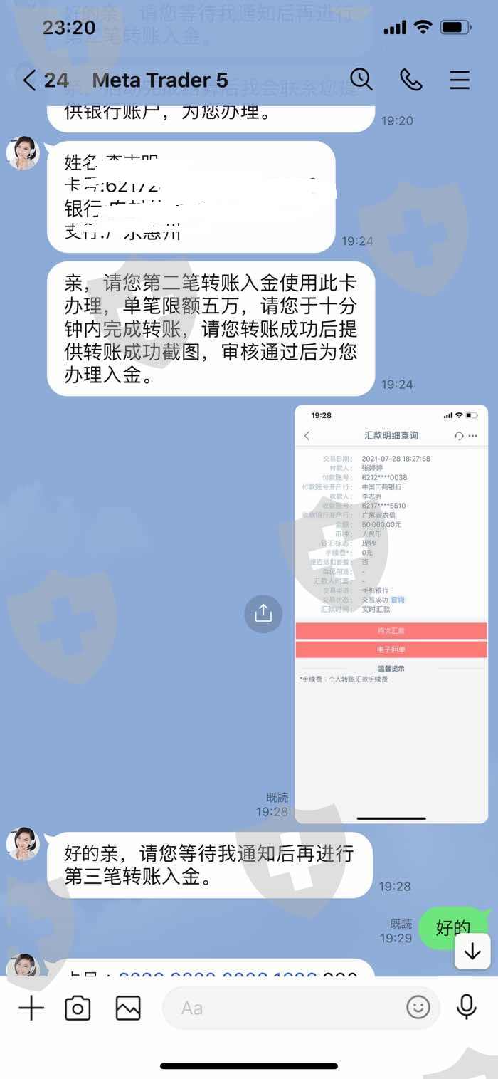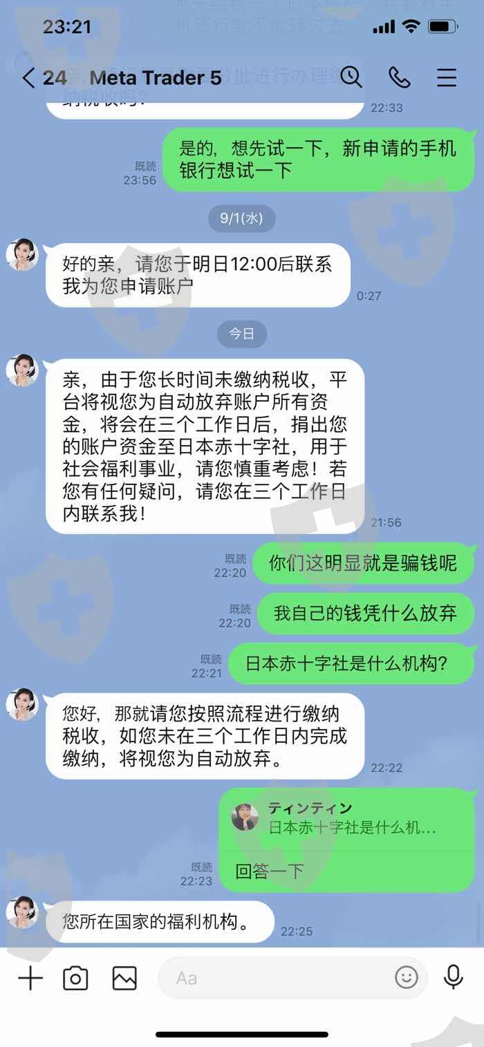 先放活动引诱,然后以不完成活动唯由限制出金,之后通知要交易600手才能出金,交易完后又要求缴纳4万美元税金,并冻结MT5账户。之后在以未交税金为由,称本人自动放弃资产。