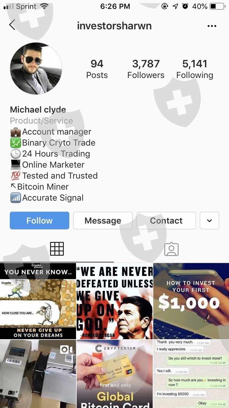 We'd like to give these scammers the benefit of the doubt and assume that they don't know they're involved in a scam. Either that or someone who's down on their luck might resort to desperate measures to earn a bit of extra cash. Either way, I made a deposit and made a trade in a few months. And after that All my money was lost and this Micheal Clyde was not replying anymore and can't contact him anymore.