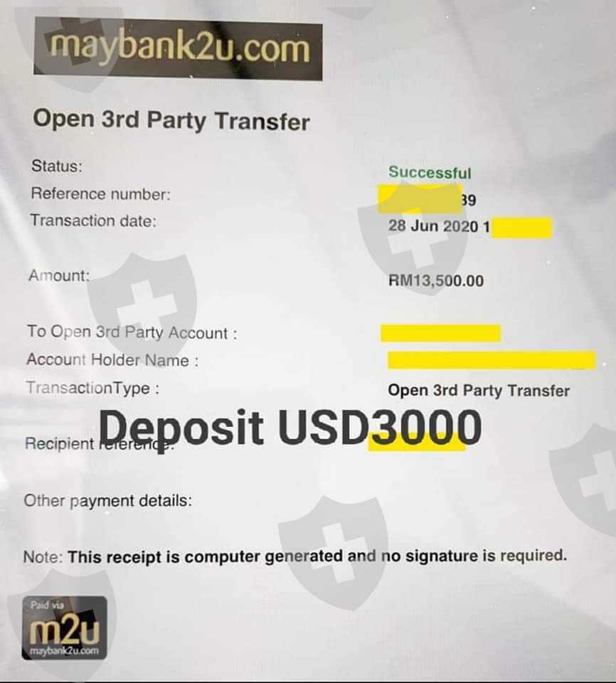 这是我入金的证明,但他们不让我出金。我将为此采取法律措施。