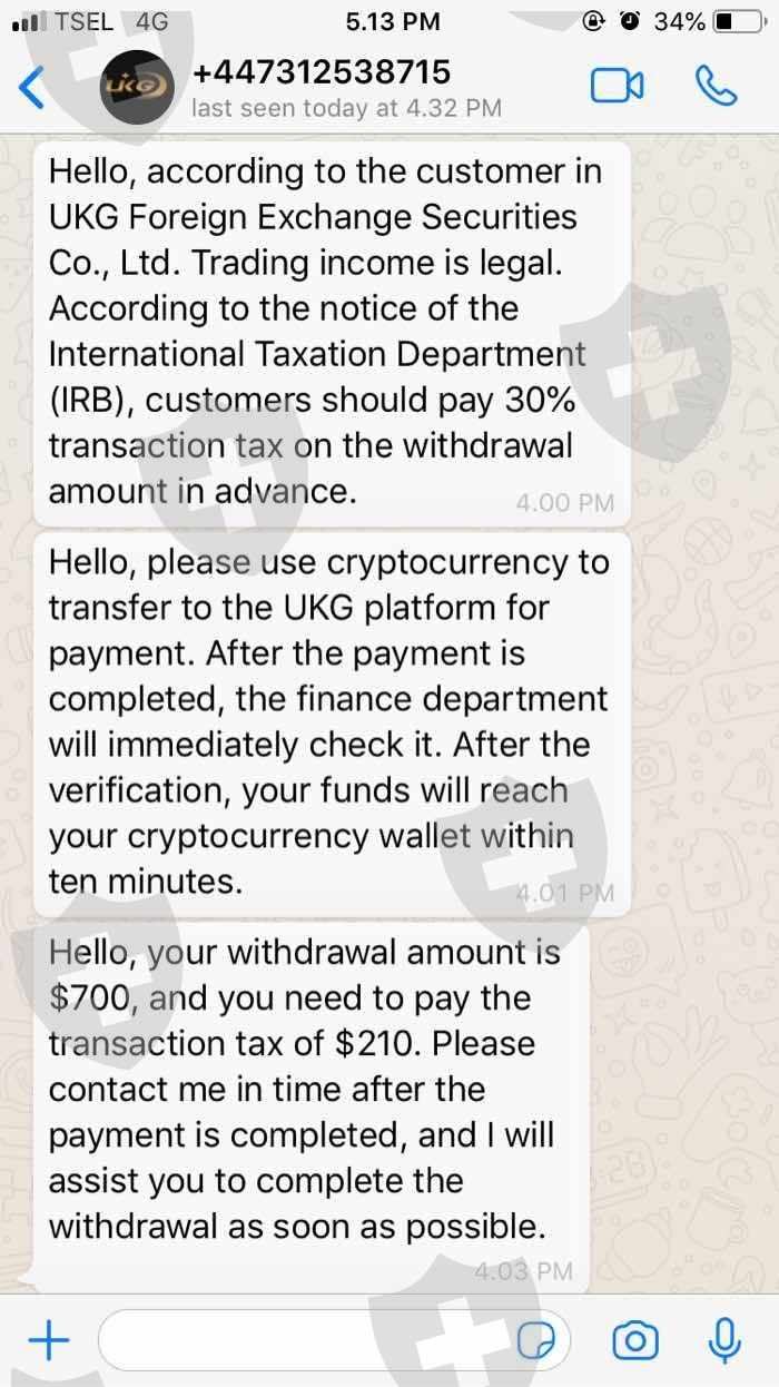 一开始我存了将近200 USD,然后我开始盈利。赚钱似乎很容易,让我很高兴。我很快就拿到了 700 美元。但是,这笔钱只是这家公司给我们看的一个数字,我们不能提现。有人告诉我提款 700 美元需要 210 美元的税。但是,现在钱还没有到账。