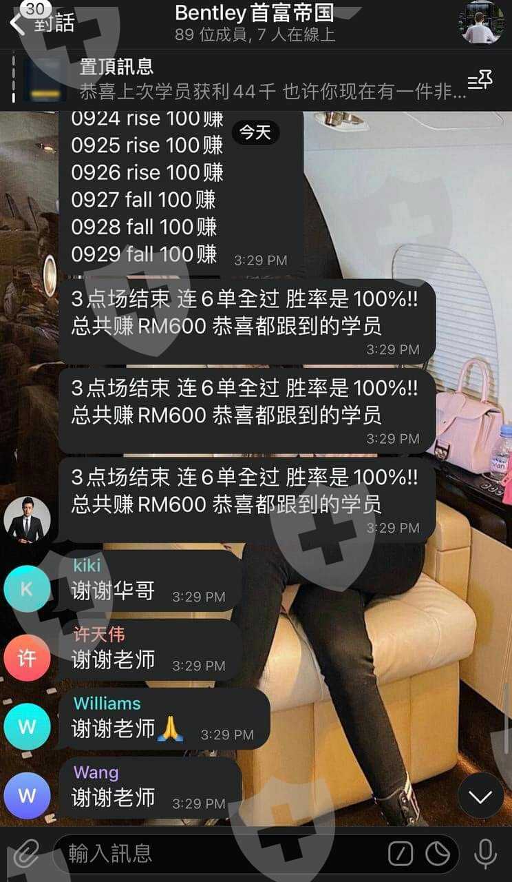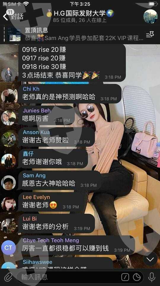 2] 自称团队, 找目标成为投资人成为学生学投资, 而这个LU 老师以VIP的技术来1对1包赚跟单技术(在Telegram), 而最后要给30%佣金, 以下是一些对话和一些证据