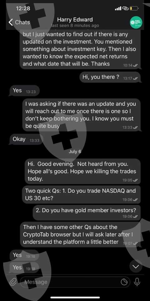 一旦入金,他们就不再回复你,也无法出金,截图和信息都是通过其他渠道伪造的,不要相信他们,不要购买任何产品或投资套餐。
