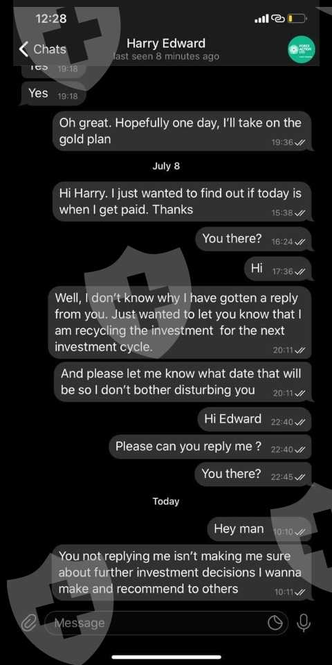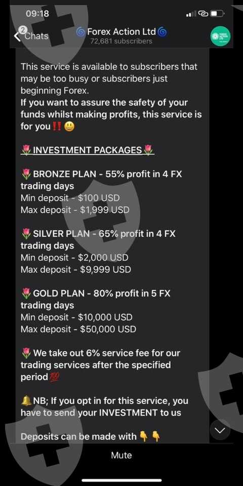 SCAM ALERT 🚨forexactionltd/ForexEdward (Scam) -They are offering investment packages, but once you make the payment they stop answering you. You will lose your money, they will not pay out your investment. They use fake screenshots and signals from other channels to provide content and gain trust. Be careful with them and do not buy any products or investment packages.