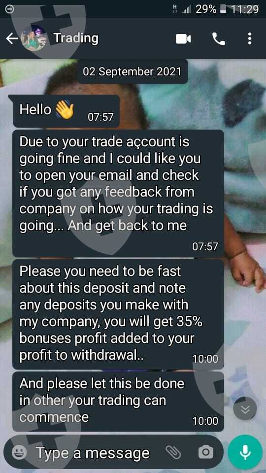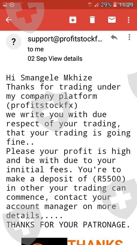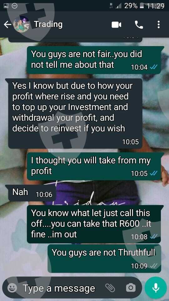 那位女士让我开个账户并入金 R600,我做到了,但后来要求我再存 R5500 才能提款PROFIT,我告诉她我没有那么多钱。