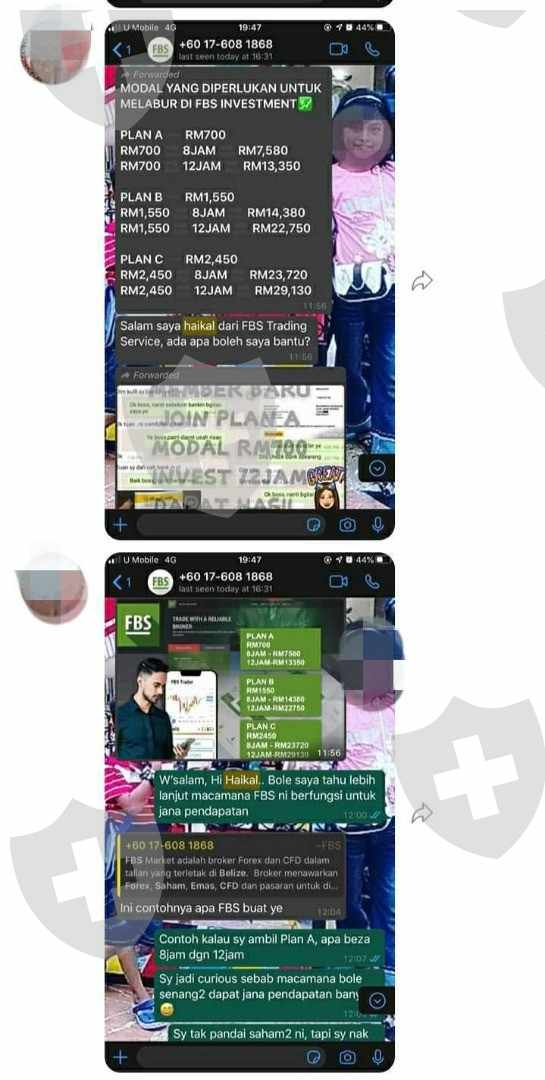 I was offered an investment plan by an agent. Who told me that if i invested $200, within 12 hours he will give me a return of $3500. I was convinced because i trusted the Broker because i've been using it for awhile and there's no issue for me. After i invested, the agent asked me to pay 15% fee of profits. He claimed it was Fund Manager's trading fee and Service Tax. Now the agent blocked me already. Please be aware if there's any agent pretending to work for the Broker and offers investment service, please stay away!