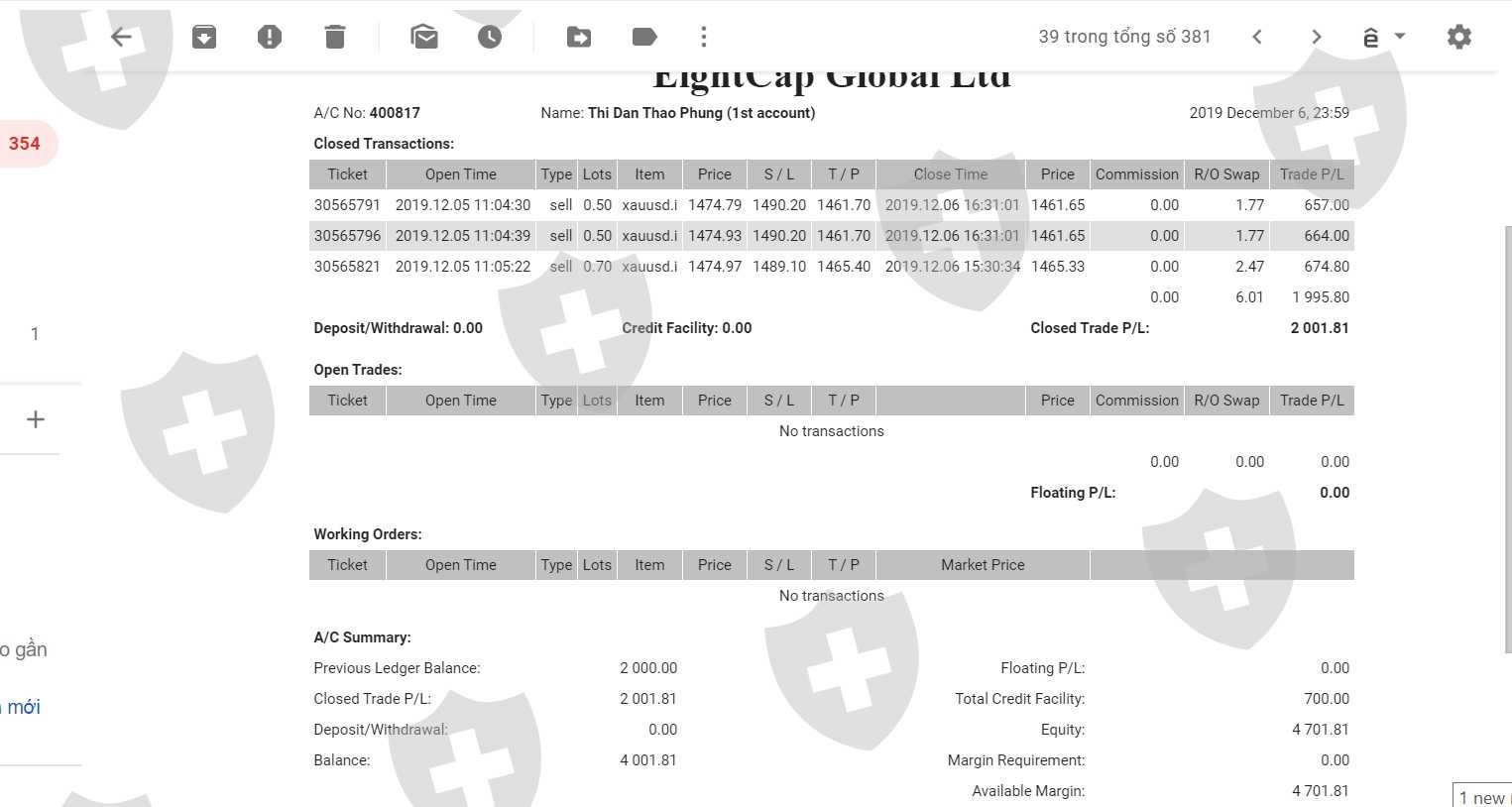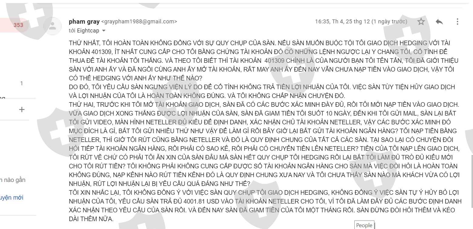 Calumniating me to trade HEDGING with another MT4 account 401309 without proof (even if this is my friend MT4 account, and he hasn’t made any deposit or any transaction yet), then remove all my transactions and profits.