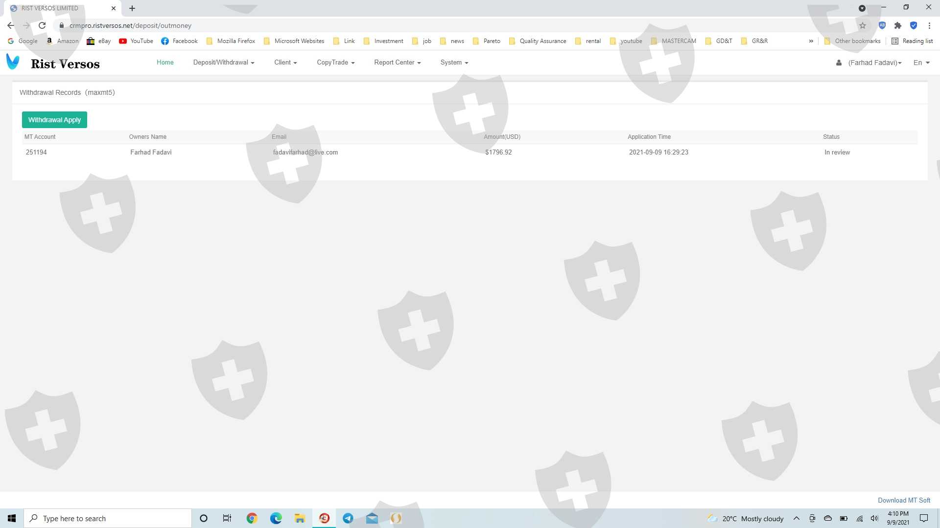 我的帐户中有 1796.92 美元,我要求全额出金,通过在线聊天,他们告诉我需要 3 到 5 个工作日才能拿到钱。 9 月 9 日星期四早上,没有迹象表明我的钱被转移了,我账户上的账户余额仍然是 1796.92 美元。当天下午我打开平台,我注意到我的账户中只剩下 2.67 美元,所有余额都没有了,出金请求是在前一天晚上提出的。